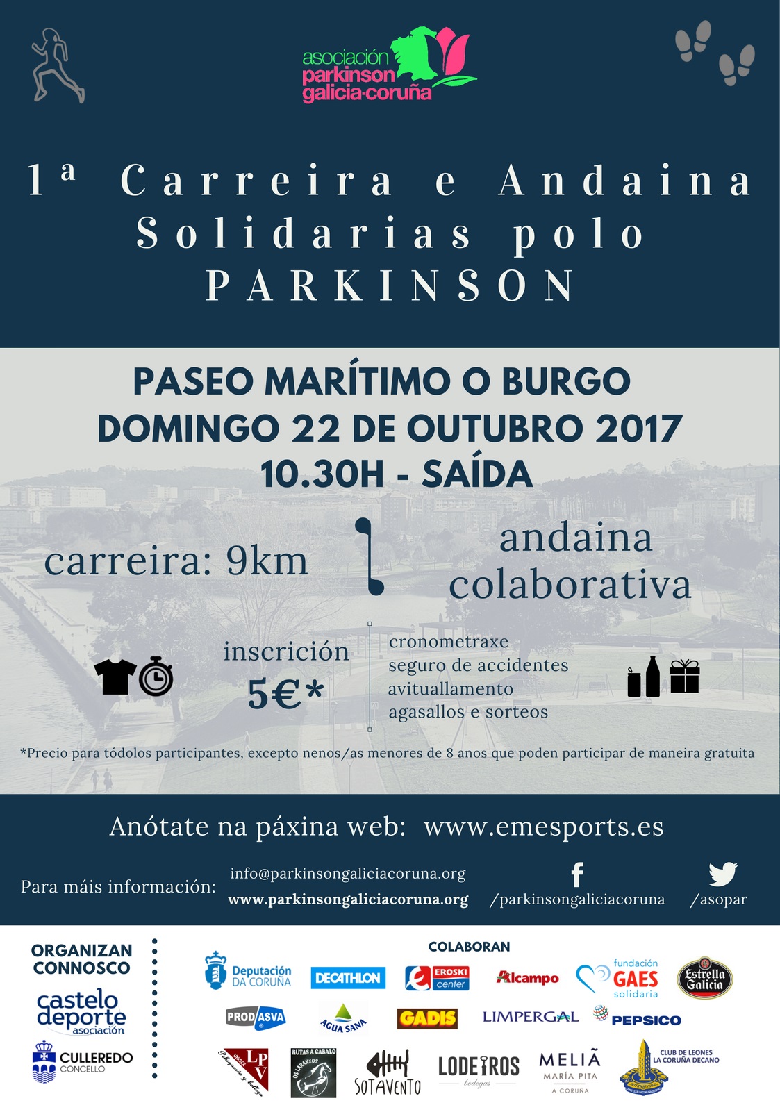 1ª CARREIRA E ANDAINA SOLIDARIAS POLO PARKINSON NO PASEO MARÍTIMO DO BURGO