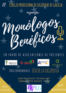 El sábado 4 de Marzo a las 18.30 de la tarde, el Colegio Profesional de Logopedas celebrará una Gala de Monólogos Benéficos para celebrar el día Europeo de la Logopedia. El acto tendrá lugar  en el centro cívico de Os Mallos, en A Coruña, y la recaudación irá destinada al apoyo de distintas asociaciones de pacientes como la nuestra.